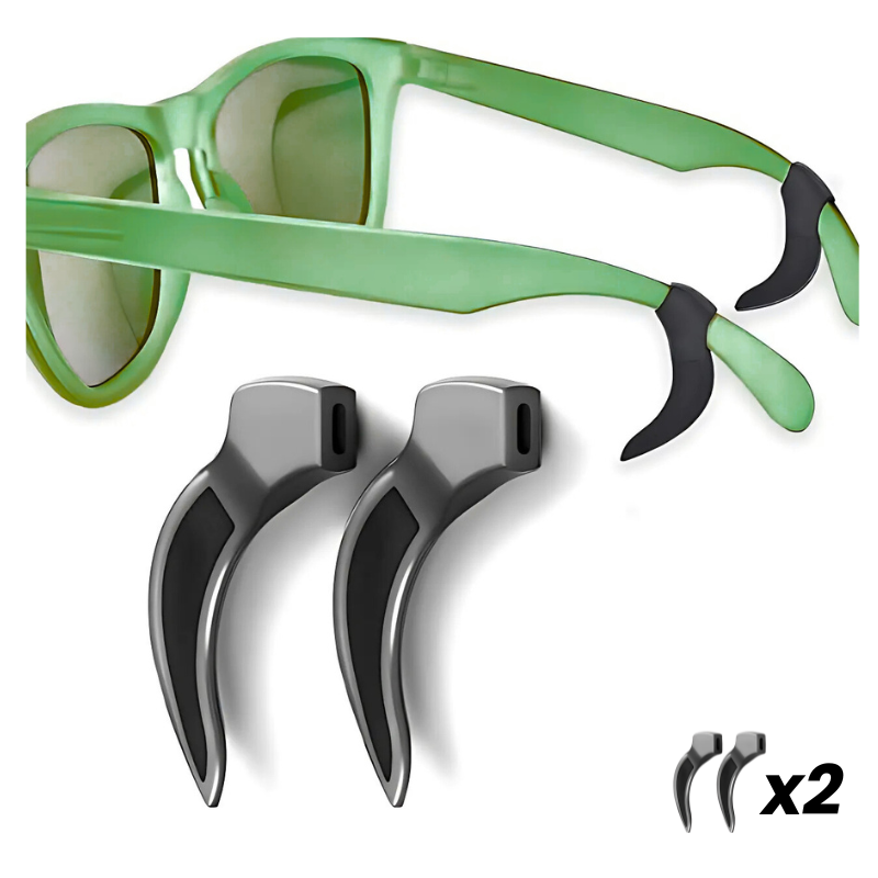 Slide the grips onto the ends of your spectacle arms and position them just behind your ears. They provide a stable, non-slip hold that prevents glasses from slipping during work, sports, driving, or warm weather.
