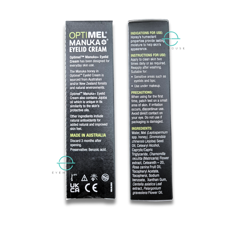 Optimel Manuka Eyelid Cream uses 16.5% Leptospermum (Manuka) honey and jojoba seed oil to soothe inflammation, restore the skin’s protective barrier and improve eyelid comfort.
